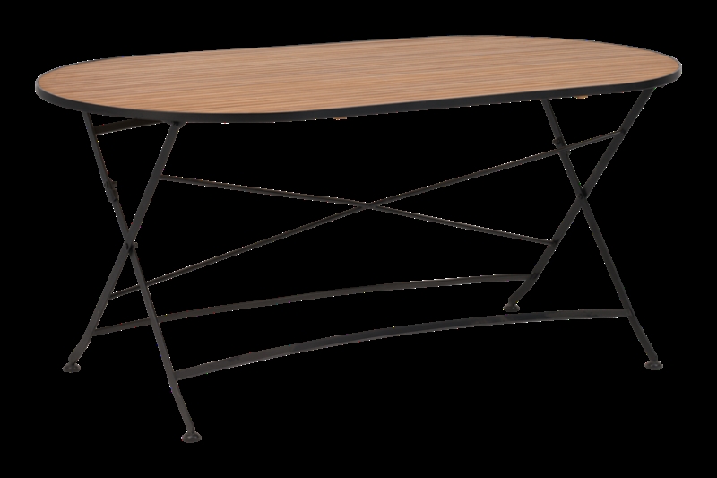 Ovalt havebord som kan foldes sammen. Brewer havebordet er produceret i pulverlakeret stål med bordplade i teak træ.