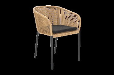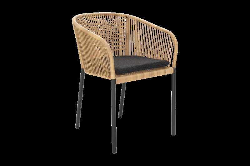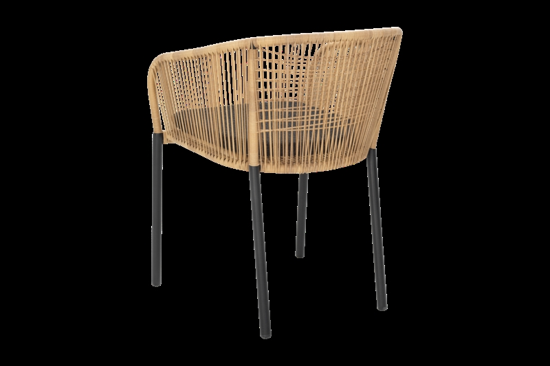 Smuk og enkelt havestol fra Brafab. Sæde og ryg flettet med kunstflet i naturlig farve på et stel i pulverlakeret aluminium. Farven på benene er antracit og havestolen leveres inklusiv en hynde i sort. Havestolen er stabelbar - maks. 4 stk. i en stabel