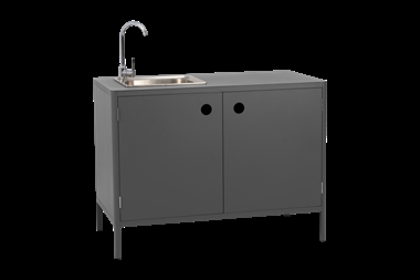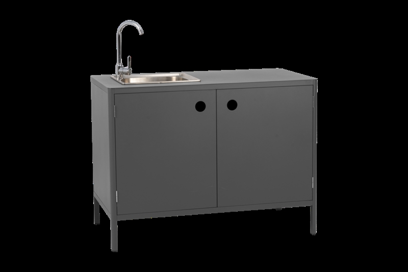 Dette modul er produceret i pulverlakeret aluminium med låger og vask. Komplet med armatur og afløb. Under armaturet sidder en kobling til vandslangen.