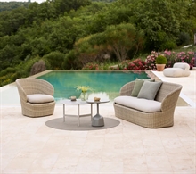 En meget komfortabel loungestol med god ryg og armlæn som svøber sig omkring dig. Håndflettet elegance, med et dreje led i foden, så stolen kan vendes. Der findes sædehynder i flere farve til loungestolen.