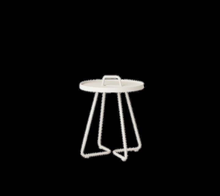 On the Move bakkebordet fra Cane-line, er et praktisk og let sidebord / bakkebord fremstillet i aluminium med en stærk pulverlakering, så det både kan anvendes ude og inde.