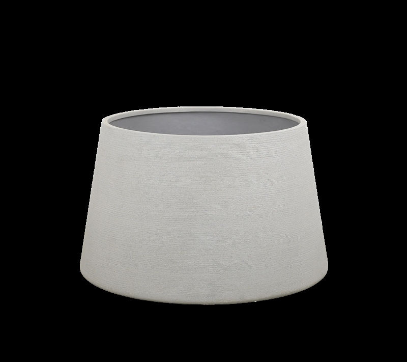Plantekassen er produceret glasfiber med en teksturerede overflade. Den har et trapezformet udseende og har en god størrelse til mange planter. En stærk plantekrukke som kan tåle det danske klima.