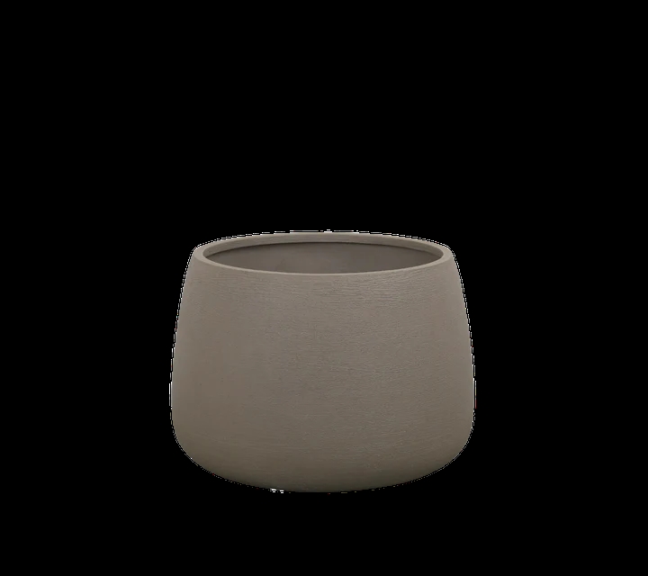 Plantekrukken er produceret glasfiber med en teksturerede overflade. Den flotte afrundede form skaber et flot element på terrassen