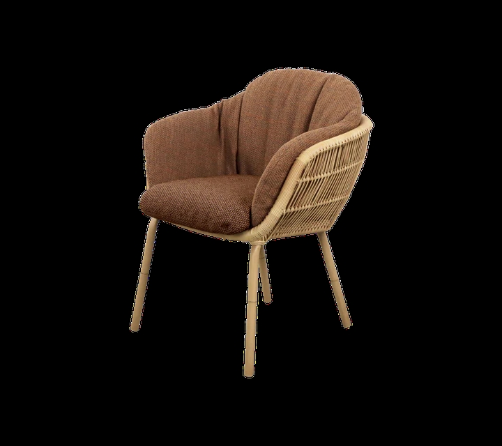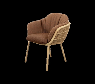 Cane-line Stay havestol i lys fibre med naturligt udseende. Havestolen er stabelbar og hyndesættet er med Quick dry skumkerne og findes i flere farver. Denne udgave er med hyndesæt i Cane-line Rise stof i farven Umber Brown Y151.