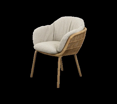 Cane-line Stay havestol i lys fibre med naturligt udseende. Havestolen er stabelbar og hyndesættet er med Quick dry skumkerne og findes i flere farver. Denne udgave er med hyndesæt i Cane-line Rise stof i farven Desert Sand Y152.