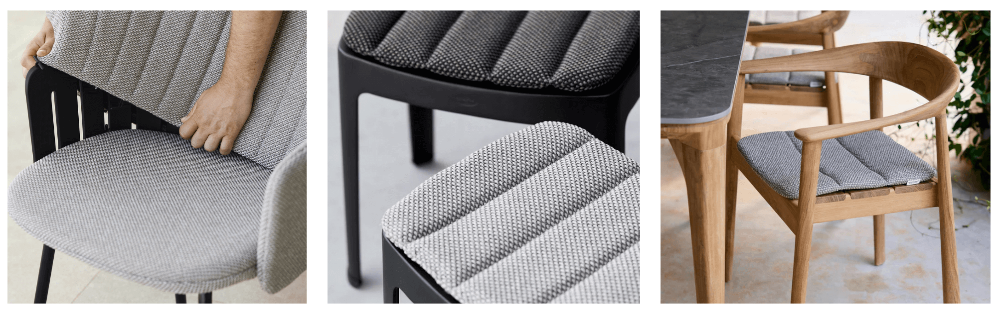 Derfor gør hynder fra Cane-line en stor forskel i dit uderum Komfort, der kan mærkes Selvom mange Cane-line møbler i sig selv er behagelige at sidde i, giver hynderne et ekstra lag af komfort, som gør en tydelig forskel. Hynderne er bløde, formstabile og udviklet til at holde faconen gennem mange sæsoner. Uanset om du bruger dine havemøbler til morgenkaffe, aftensmåltidet eller lange sommeraftener, giver hynderne en mere afslappet og behagelig siddeoplevelse. Hynderne fås i flere tykkelser og størrelser, så de kan tilpasses både spisebordsstole, loungestole og sofaer. Mange vælger også at bruge hynderne som en måde at opgradere eksisterende møbler på – et godt eksempel på, hvordan komfort og æstetik går hånd i hånd. Designet og udviklet til udendørs brug En af de største fordele ved Cane-line hynder er, at de er fremstillet til netop det klima, vi oplever herhjemme. De bruges året rundt og er udviklet med fokus på modstandsdygtighed over for fugt, sollys og temperaturforskelle. Stofferne er: