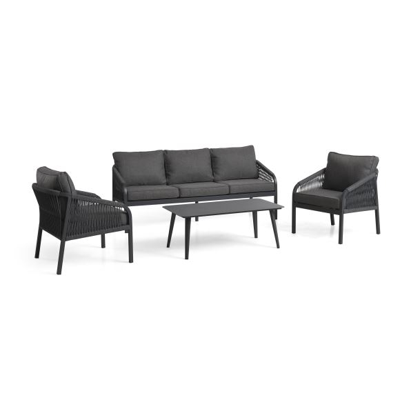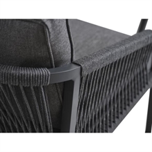 Smuk designet loungesæt med god siddekomfort. Sættet er produceret i aluminium med rope flet.