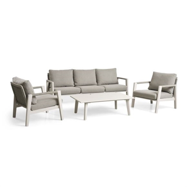Smuk designet loungesæt med god siddekomfort. Sættet er produceret i aluminium med rope flet.