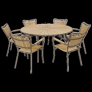 Mandalay Marguerit havesæt ø140 cm - bord med 6 stole - Mocca