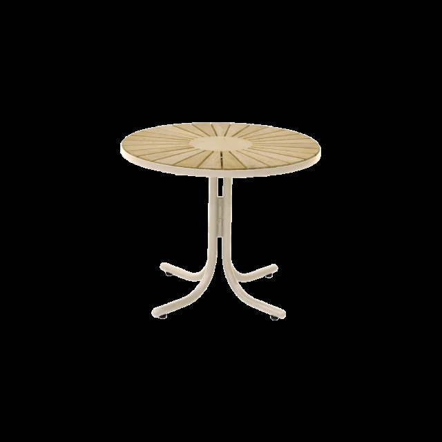 Smukt lille sidebord til marguerit loungestolen. Sidebordet er produceret i aluminium med bordplade i teak lameller.