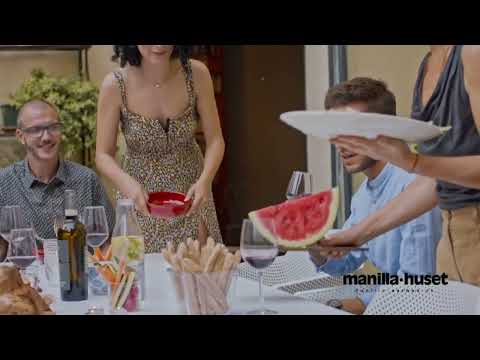 Havebordet er produceret med deres populære Duraltop i polypropylen og ben i lakeret aluminium.
